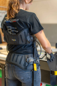 Permet grâce à un système de verrouillage-dévérouillage d’avoir une assistance ou non pour le port de charges . Il soulage les muscles lombaires et contribue à la réduction des TMS du dos.