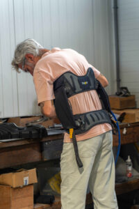 Le plus polyvalent de nos exosquelettes. Il permet de soulager les muscles lombaires lors de position penchée en avant ou même lors de travail au sol. Léger, facile à enfiler il accompagne les mouvements du corps tout en contribuant à réduire les troubles musculosquelettiques.